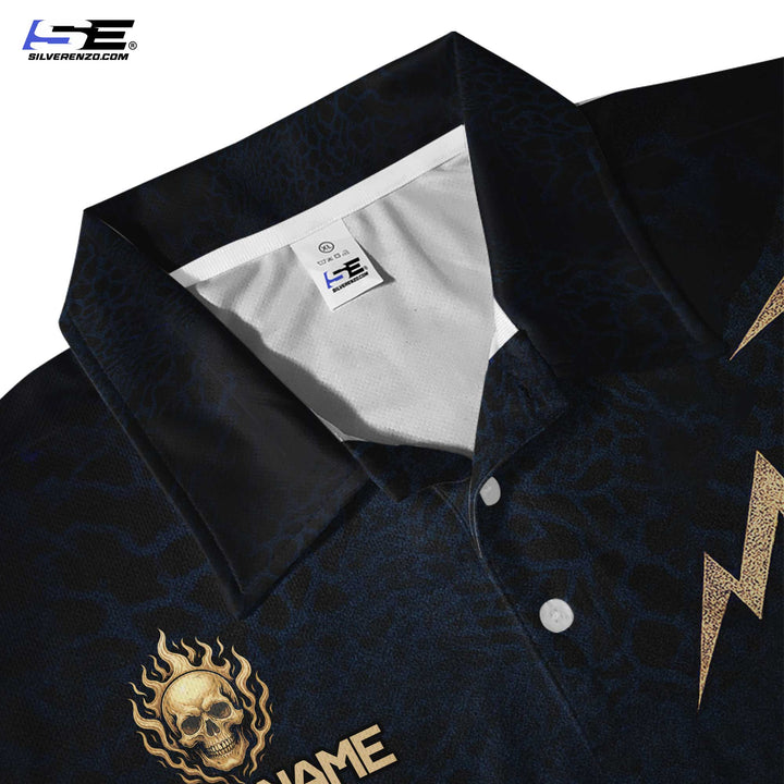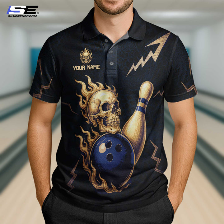 Personalized Flame Bowling Lightning Men Women Polo Shirt Custom Name Bowling Team Jersey