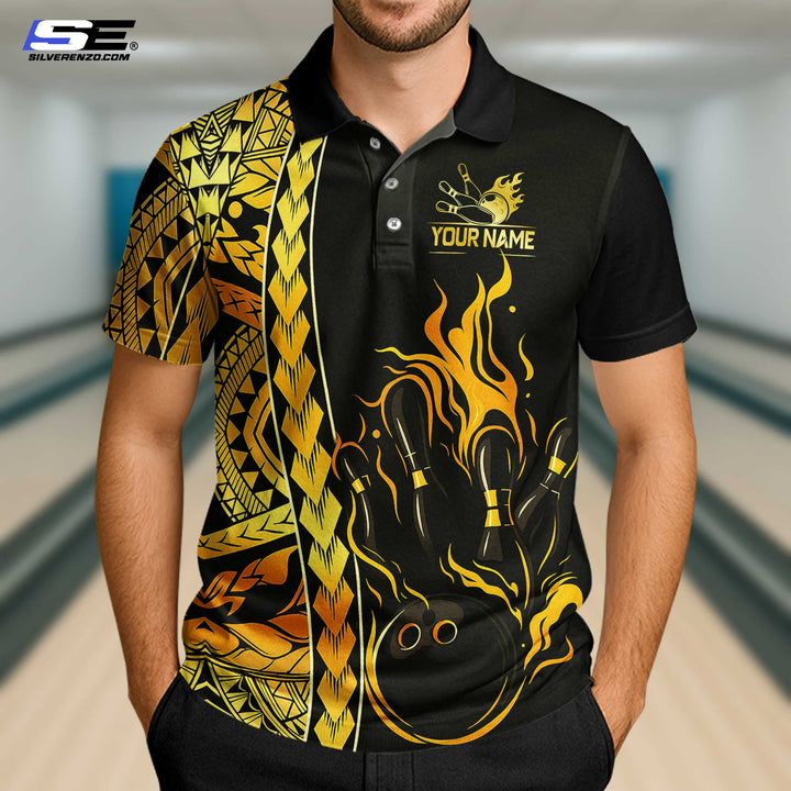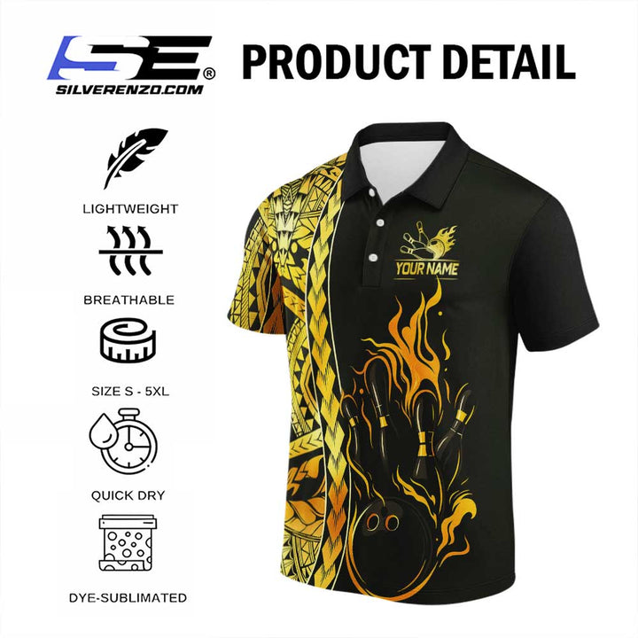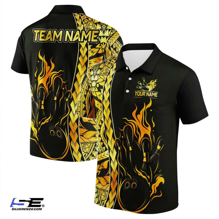 Personalized Flame Bowling Maori Men Women Polo Shirt Custom Name Bowling Team Jersey