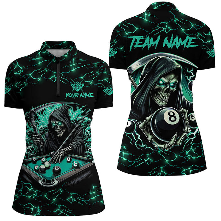 Billiards Turquoise Funny Death Skeleton 8 Ball Pool Personalized Men Women Polo Shirt Custom Billiard Team Jersey