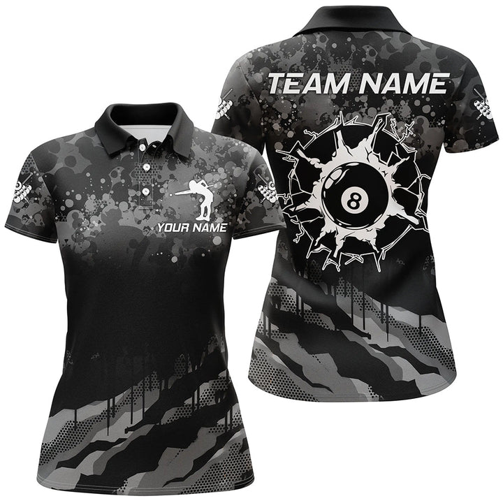 Billiards Grunge Camo Personalized Men Women Polo Shirt Custom Billiard Team Jersey