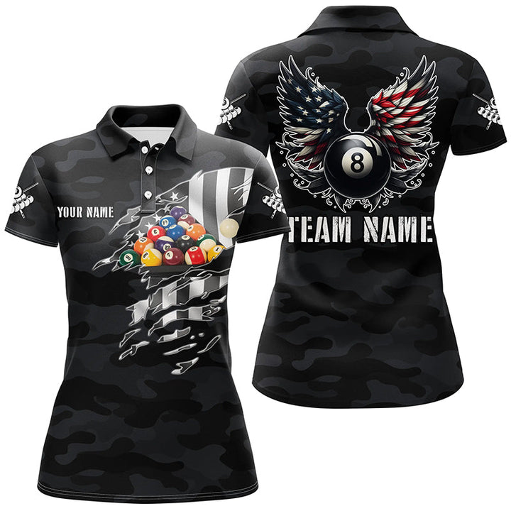 Billiards Camouflage US Flag Personalized Men Women Polo Shirt Custom Billiard Team Jersey