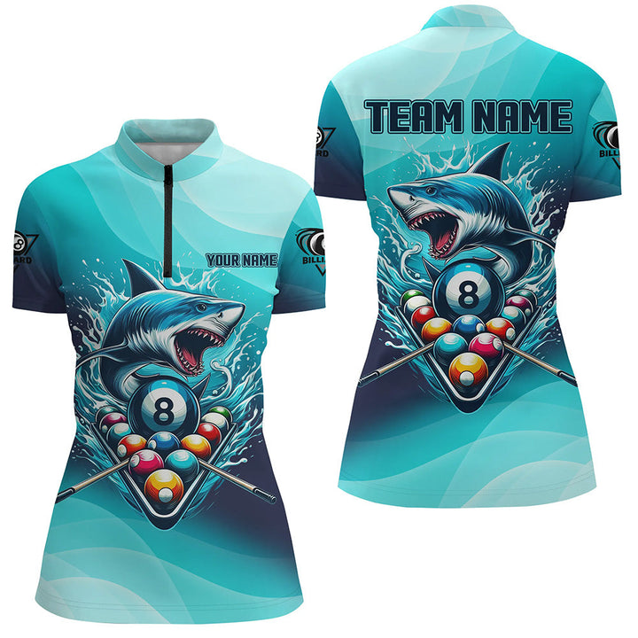 Billiards Blue Pool Ball Shark Personalized Men Women Polo Shirt Custom Billiard Team Jersey