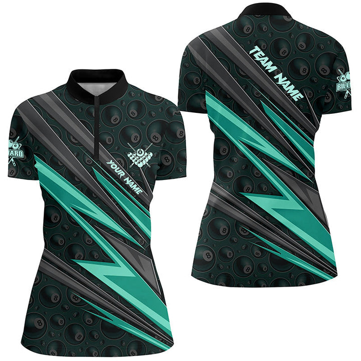 Billiards Turquoise Personalized Men Women Polo Shirt Custom Billiard Team Jersey