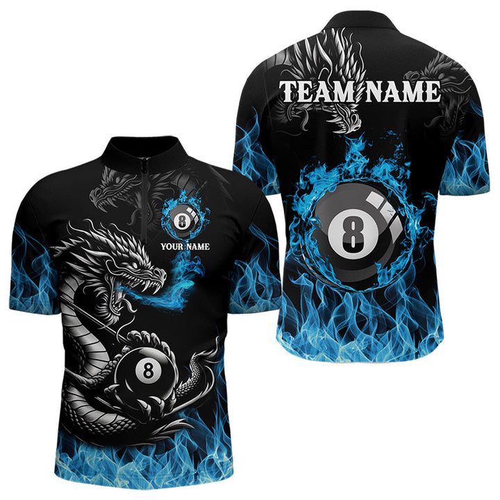 Billiards Blue Flaming Dragon 8 Ball Personalized Men Women Polo Shirt Custom Billiard Team Jersey