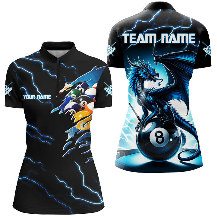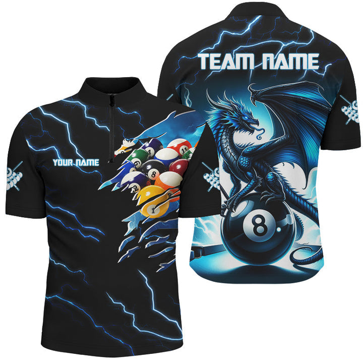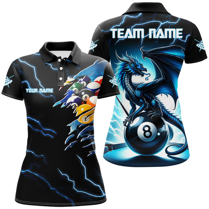 Billiards Blue Lightning Thunder Personalized Men Women Polo Shirt Custom Billiard Team Jersey
