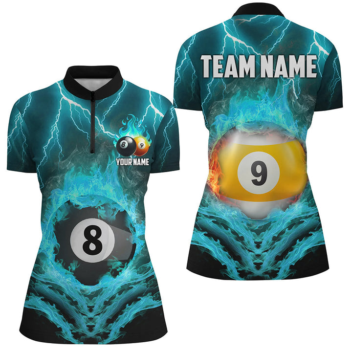 Billiards 8 Ball & 9 Ball Fire Lightning Personalized Men Women Polo Shirt Custom Billiard Team Jersey