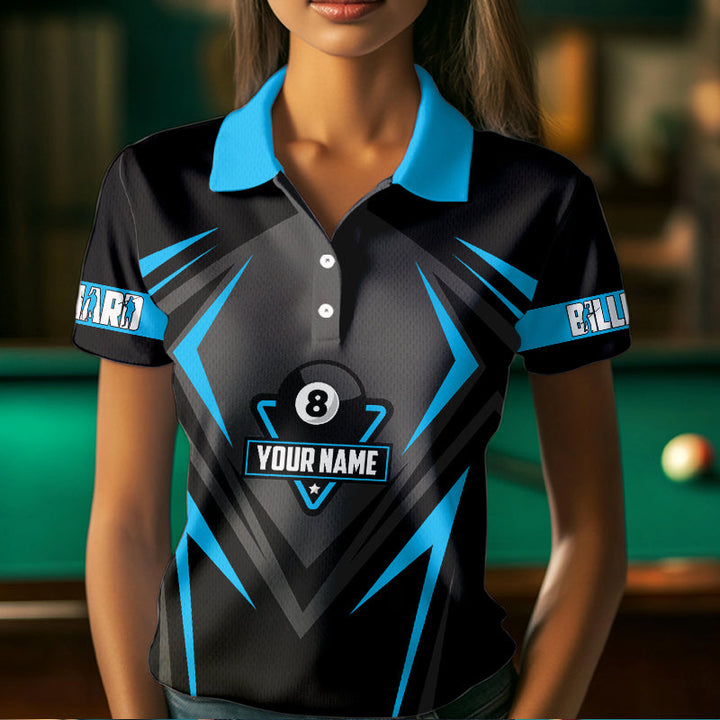 Billiards Black And Blue 8 Ball Pool Personalized Men Women Polo Shirt Custom Billiard Team Jersey