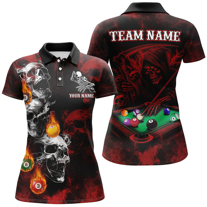 Billiards Red Smoke Skull Personalized Men Women Polo Shirt Custom Billiard Team Jersey