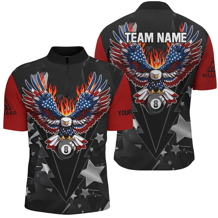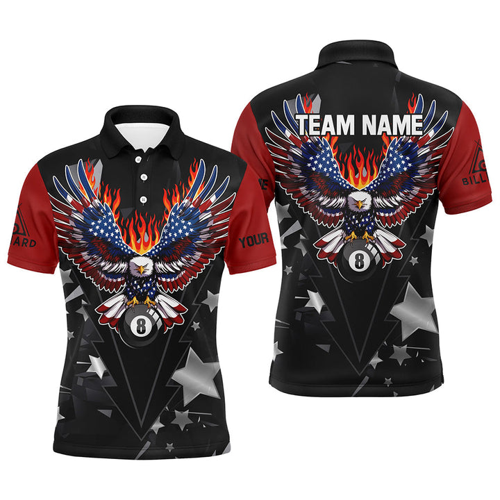 Billiards Eagle American Fire Flame Personalized Men Women Polo Shirt Custom Billiard Team Jersey