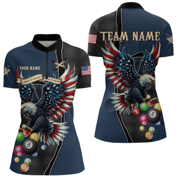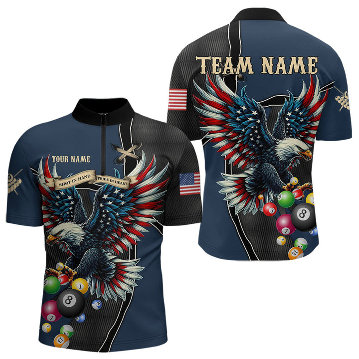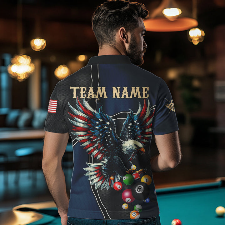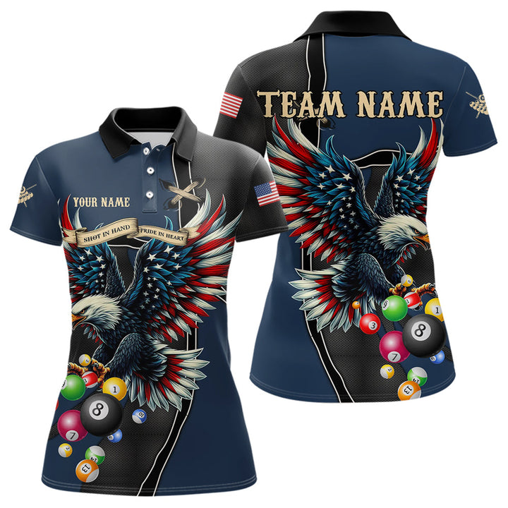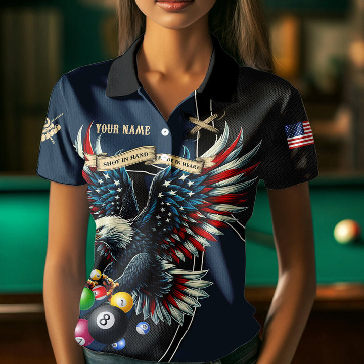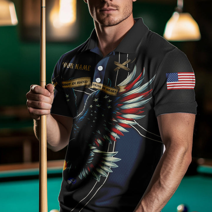 Billiards Shot In Hand Pride In Heart Eagle Personalized Men Women Polo Shirt Custom Billiard Team Jersey