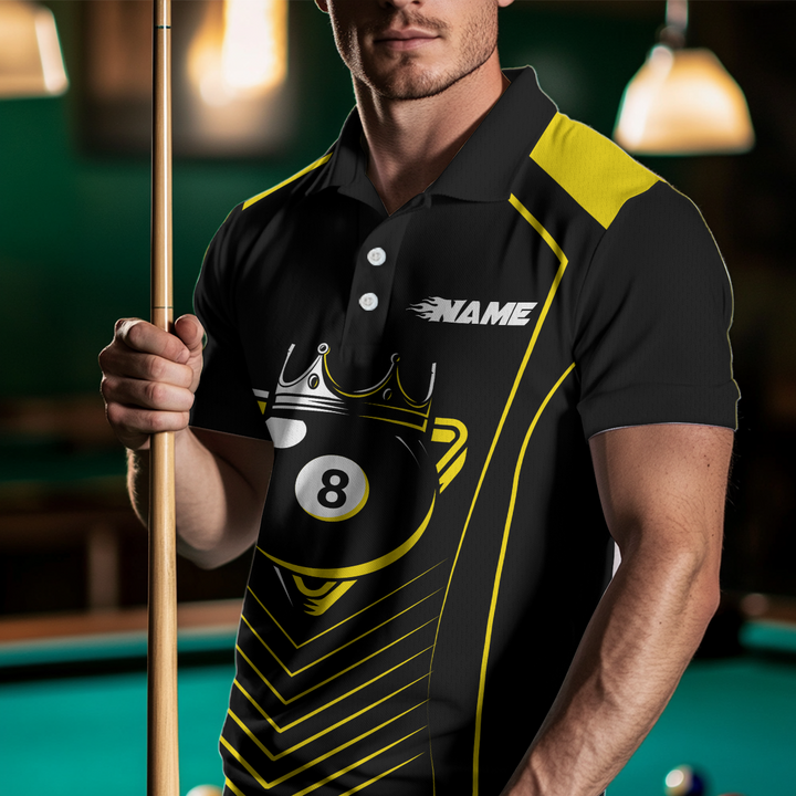 Billiards Yellow 8 Ball Pool Crown Personalized Men Women Polo Shirt Custom Billiard Team Jersey