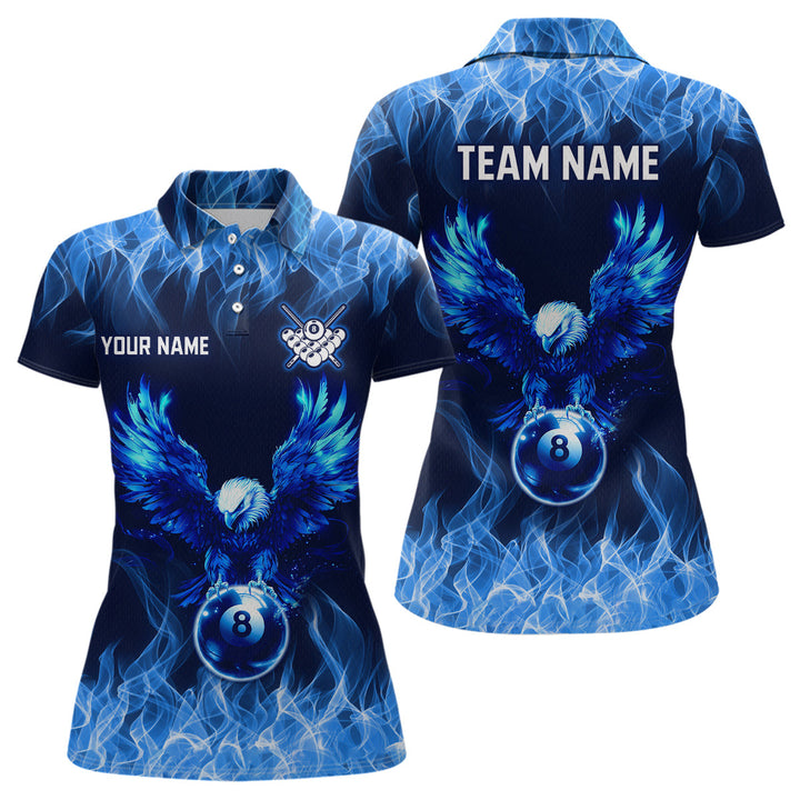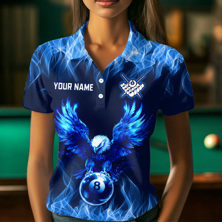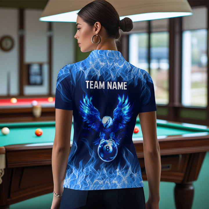 Billiards Blue Eagle Flaming 8 Ball Pool Personalized Men Women Polo Shirt Custom Billiard Team Jersey