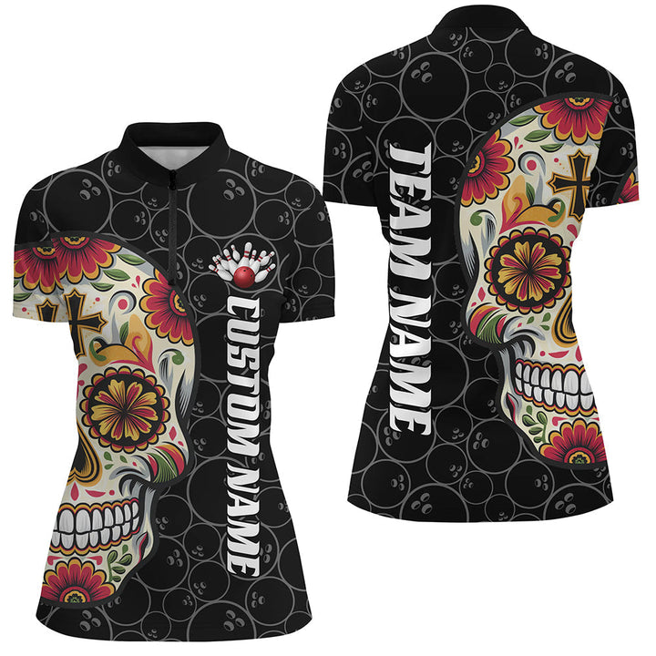 Bowling Sugar Skull Personalized Men Women Polo Shirt Custom Bowling Team Jersey