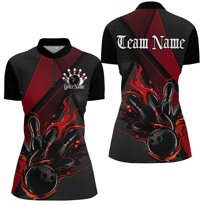 Bowling Black And Red Flame Personalized Men Women Polo Shirt Custom Bowling Team Jersey