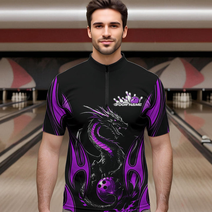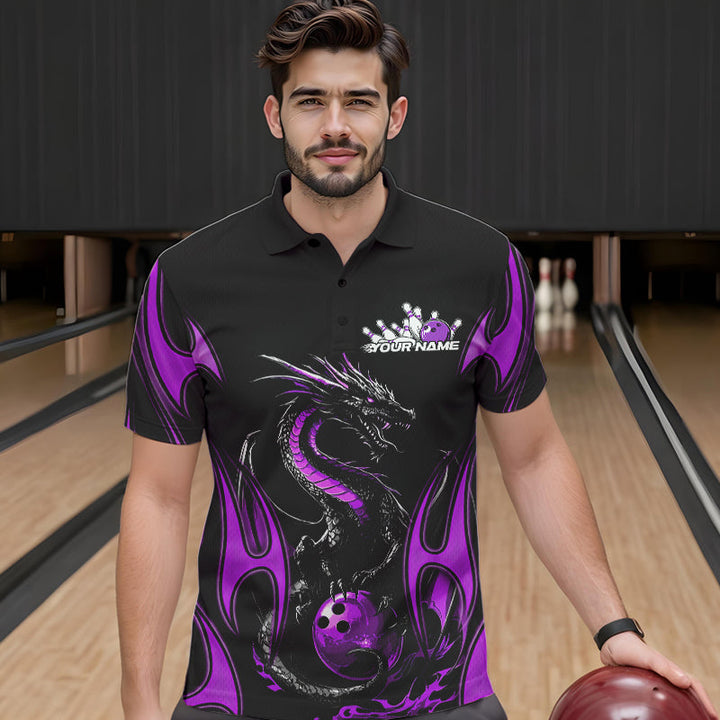 Bowling Black And Purple Flame Dragon Personalized Men Women Polo Shirt Custom Bowling Team Jersey