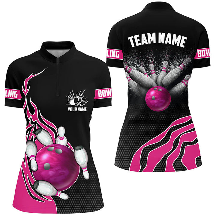 Bowling Pink Flame Personalized Men Women Polo Shirt Custom Bowling Team Jersey