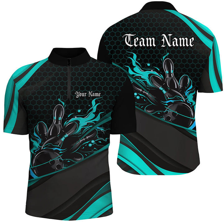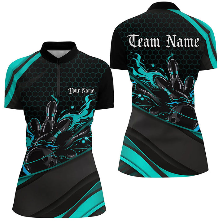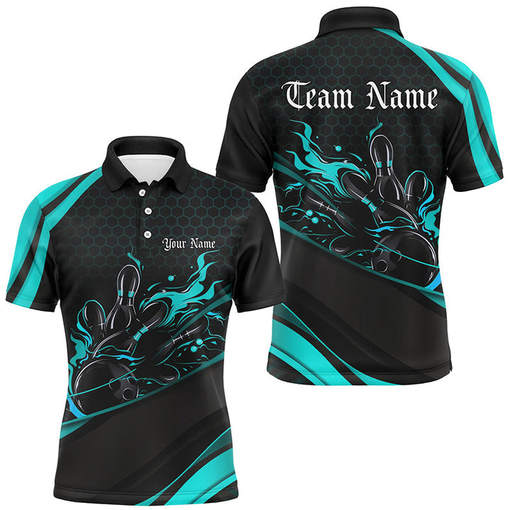 Bowling Blue Flame Personalized Men Women Polo Shirt Custom Bowling Team Jersey