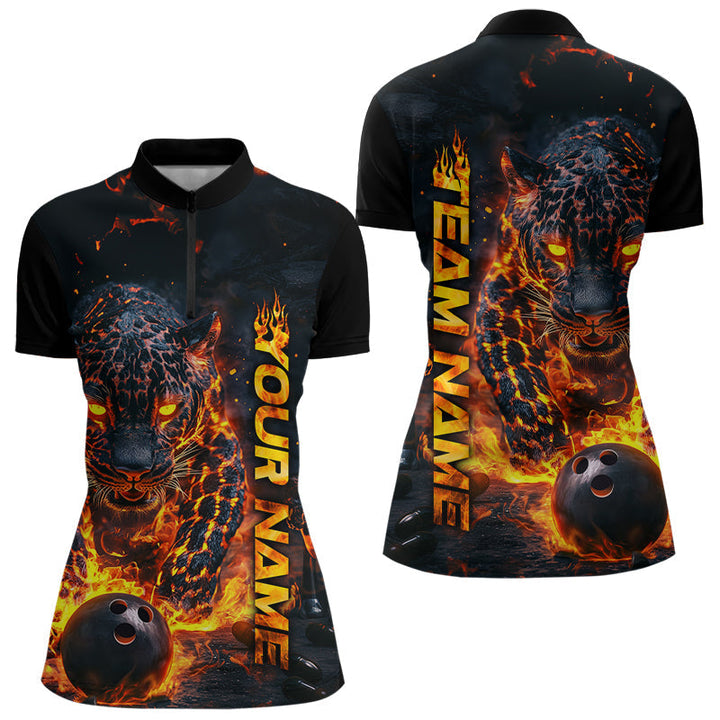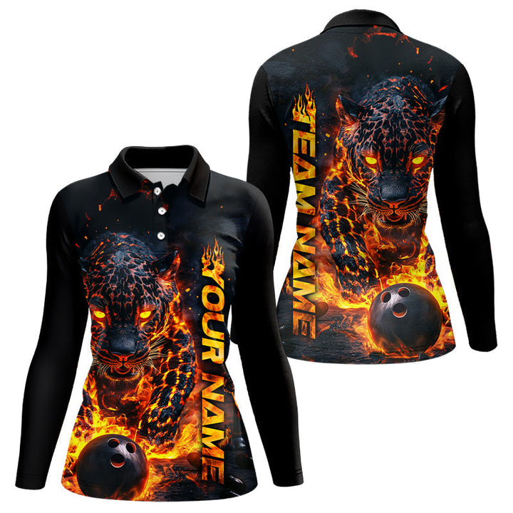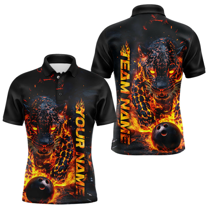 Bowling Flaming Leopard Personalized Men Women Polo Shirt Custom Bowling Team Jersey