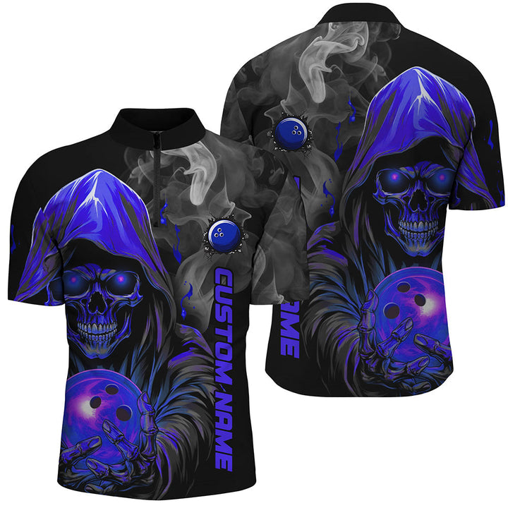Bowling Blue Skull Personalized Men Women Polo Shirt Custom Bowling Team Jersey