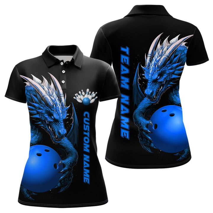 Bowling Blue Dragon Personalized Men Women Polo Shirt Custom Bowling Team Jersey