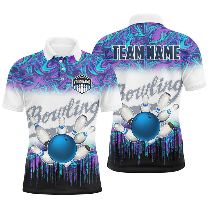 Bowling Purple Marble Personalized Men Women Polo Shirt Custom Bowling Team Jersey