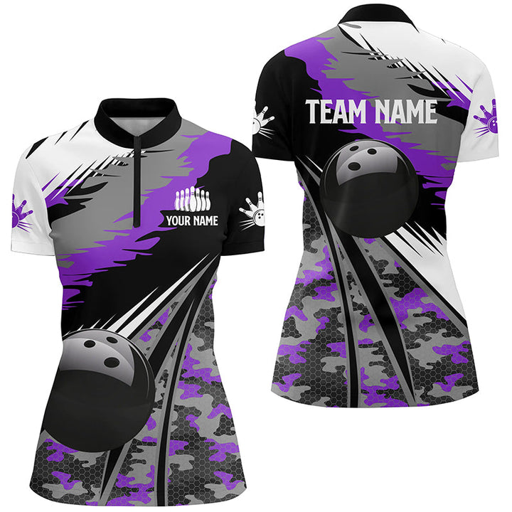 Bowling Black Ball Purple Camo Personalized Men Women Polo Shirt Custom Bowling Team Jersey