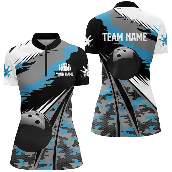 Bowling Black Ball Blue Camo Personalized Men Women Polo Shirt Custom Bowling Team Jersey