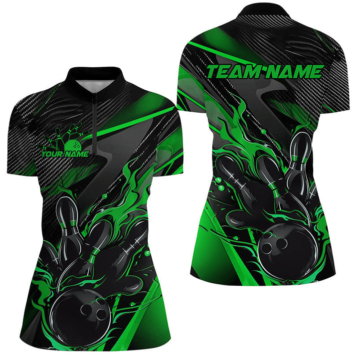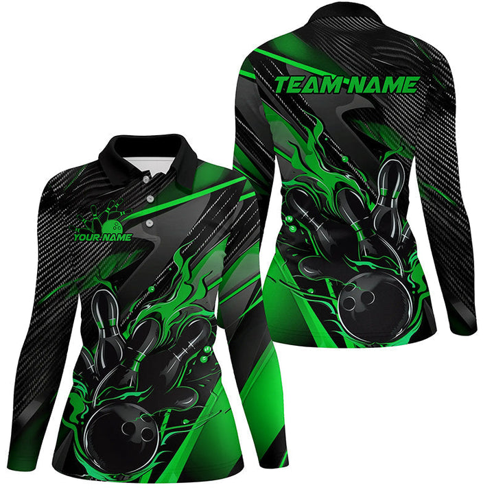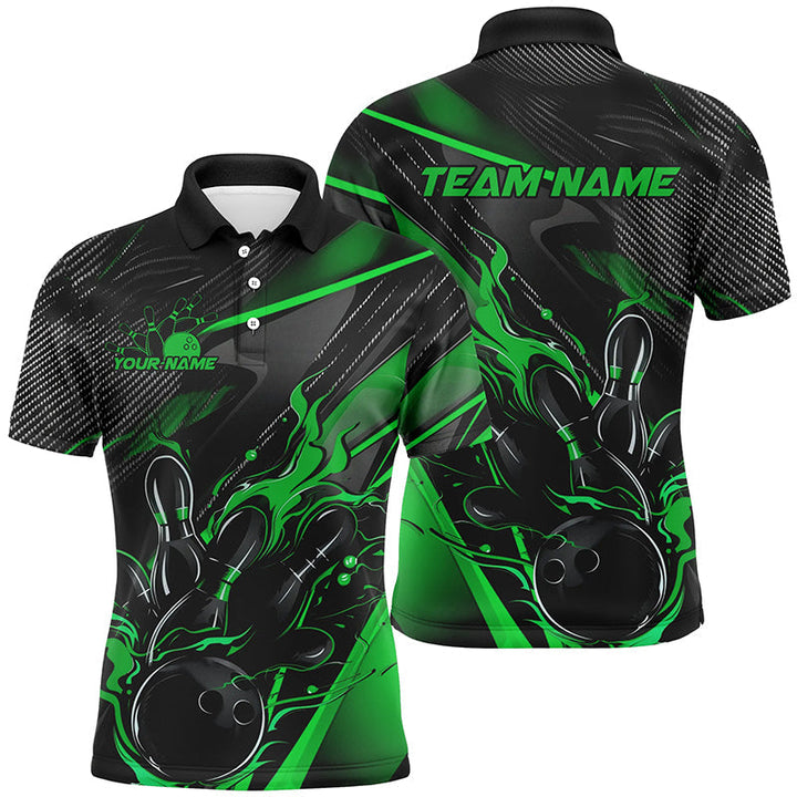 Bowling Black And Green Personalized Men Women Polo Shirt Custom Bowling Team Jersey