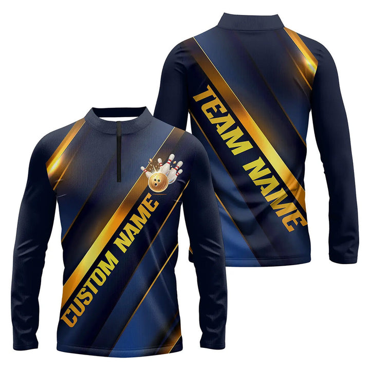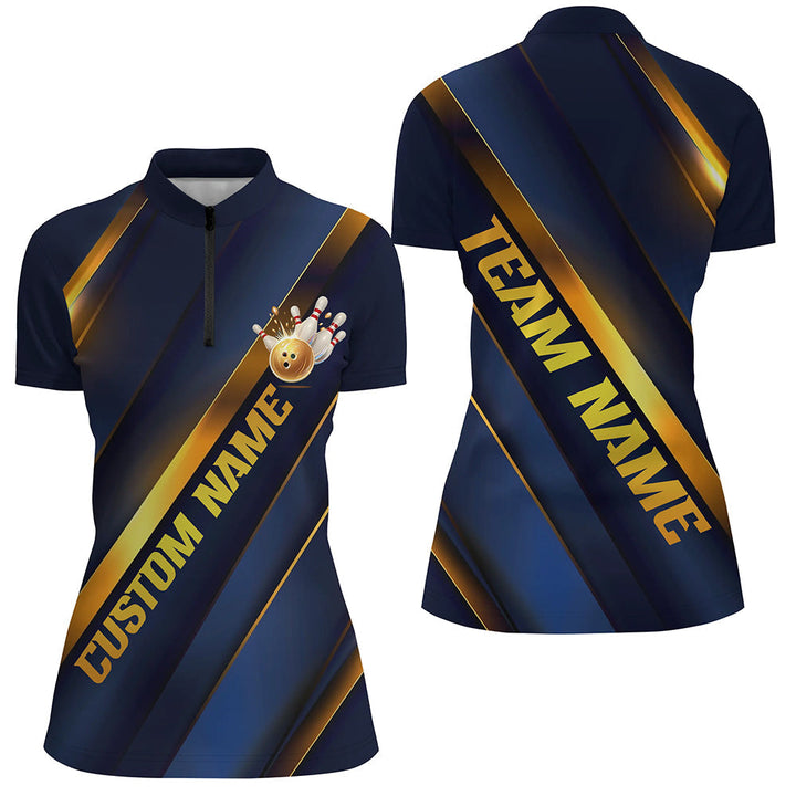 Bowling Blue And Gold Personalized Men Women Polo Shirt Custom Bowling Team Jersey