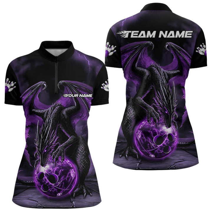 Bowling Black And Purple Personalized Men Women Polo Shirt Custom Bowling Team Jersey