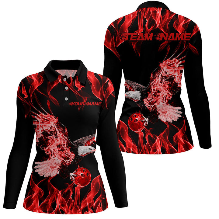 Bowling Red Flame Eagle Personalized Men Women Polo Shirt Custom Bowling Team Jersey