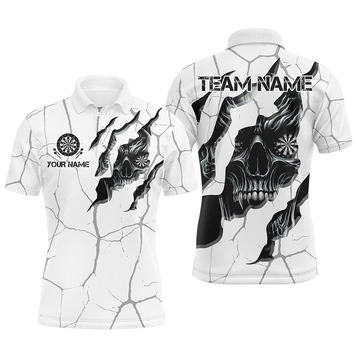 Dart Skull White Grunge Personalized Men Women Polo Shirt Custom Darts Team Jersey