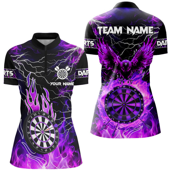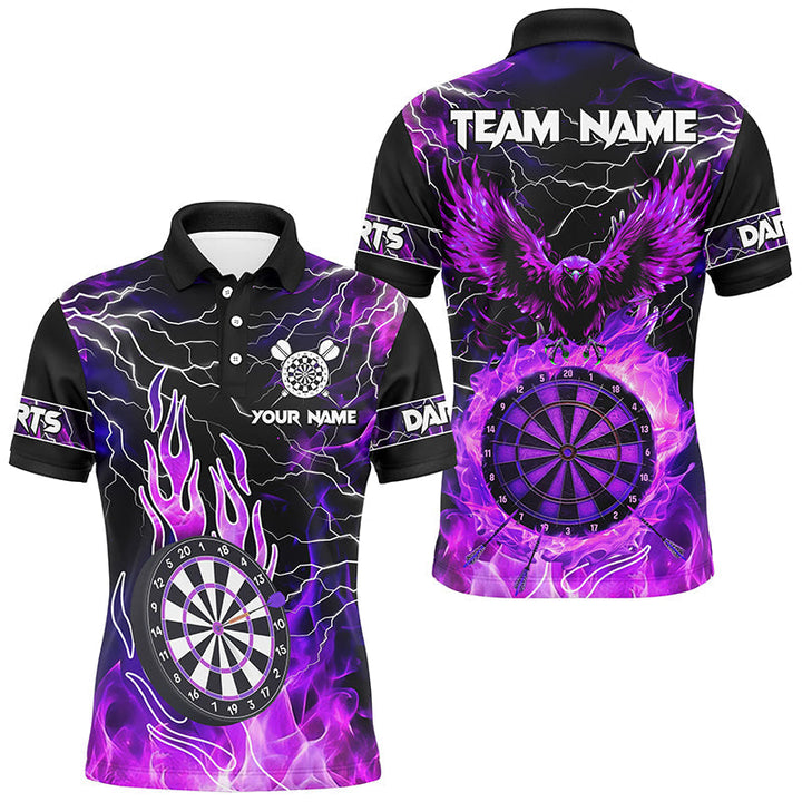 Dart Purple Dartboard Fire Flame Personalized Men Women Polo Shirt Custom Darts Team Jersey