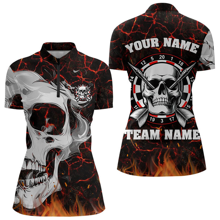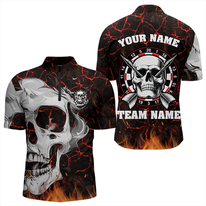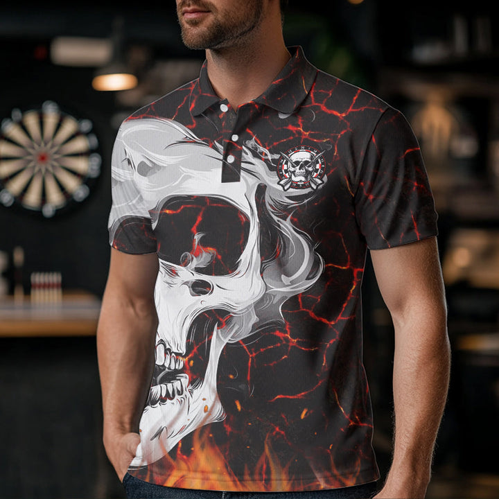 Dart Red Glowing Fire Crack Skull Personalized Men Women Polo Shirt Custom Darts Team Jersey