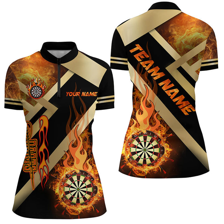 Dart Gold And Black Dartboard Fire Flame Personalized Men Women Polo Shirt Custom Darts Team Jersey