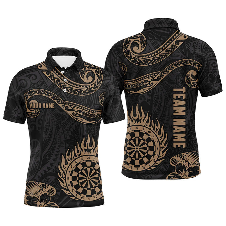 Dart Golden Hawaiian Tribal Flame Personalized Men Women Polo Shirt Custom Darts Team Jersey