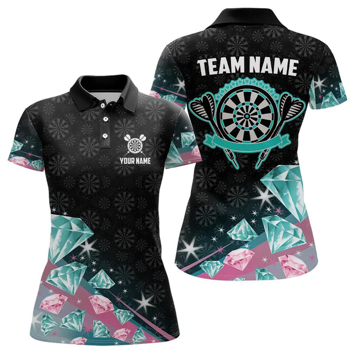 Dart Pink And Turquoise Diamonds Personalized Men Women Polo Shirt Custom Darts Team Jersey