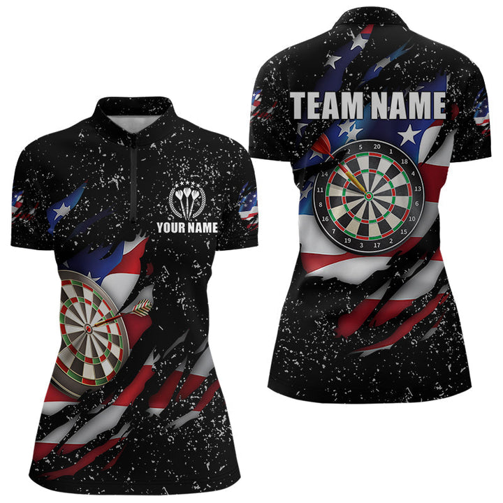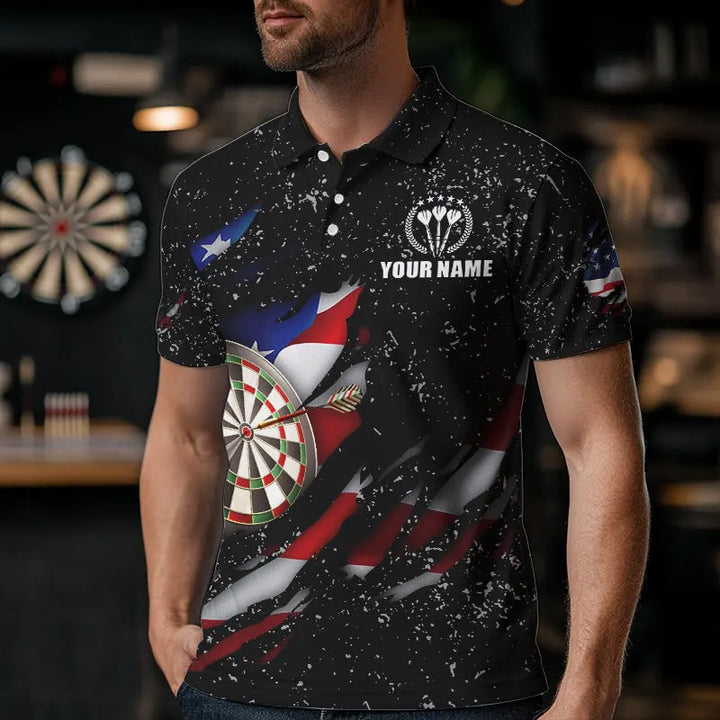Dart American Flag Black Grunge Personalized Men Women Polo Shirt Custom Darts Team Jersey