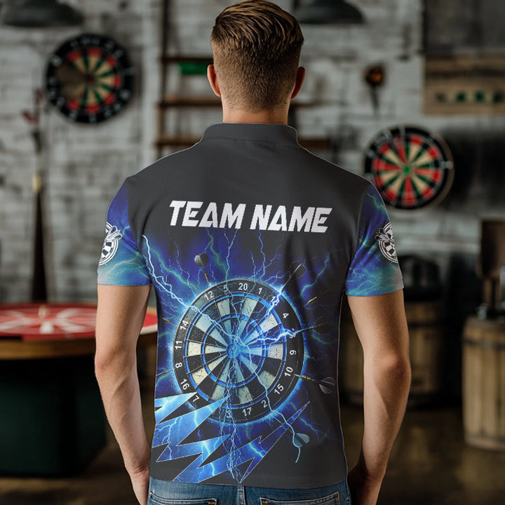 Dart Blue Dartboard Thunder Storm Lighting Personalized Men Women Polo Shirt Custom Darts Team Jersey