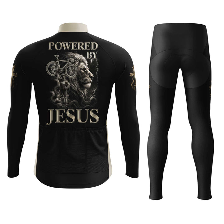 Powered By Jesus Men's Cycling Jersey Set, Road Bike Cycling Kit for Men, Biking Outfit, Bicycle Suit, Team Racing Uniform