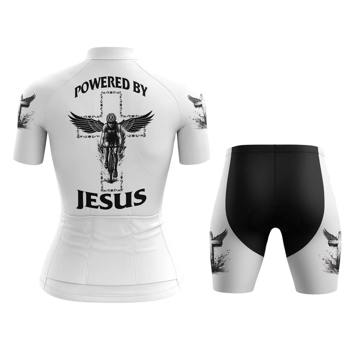 Powered By Jesus Women's Cycling Jersey Set, Road Bike Cycling Kit for Women, Biking Outfit, Bicycle Suit, Team Racing Uniform