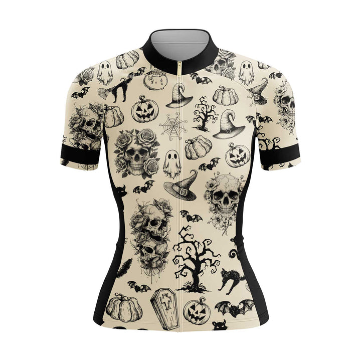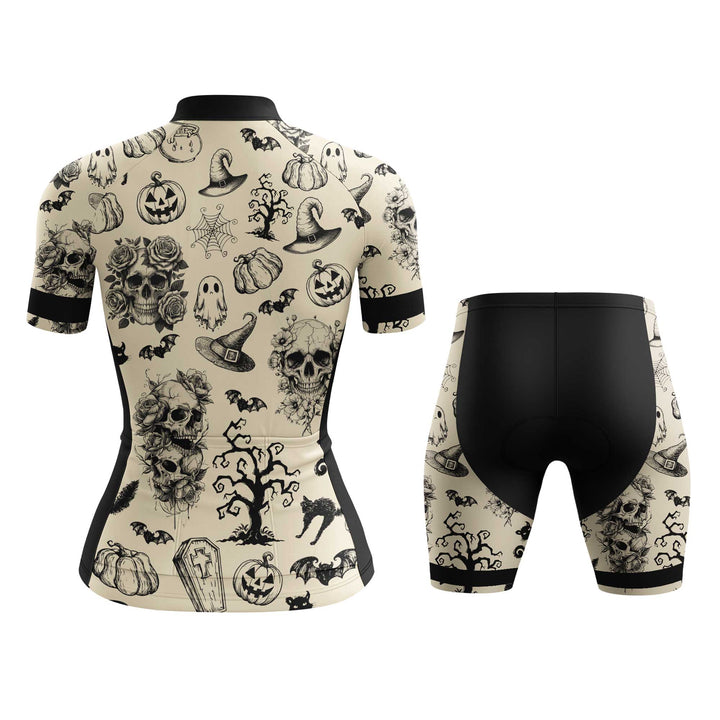 Skull Halloween Women's Cycling Jersey Set, Road Bike Cycling Kit for Women, Biking Outfit, Bicycle Suit, Team Racing Uniform