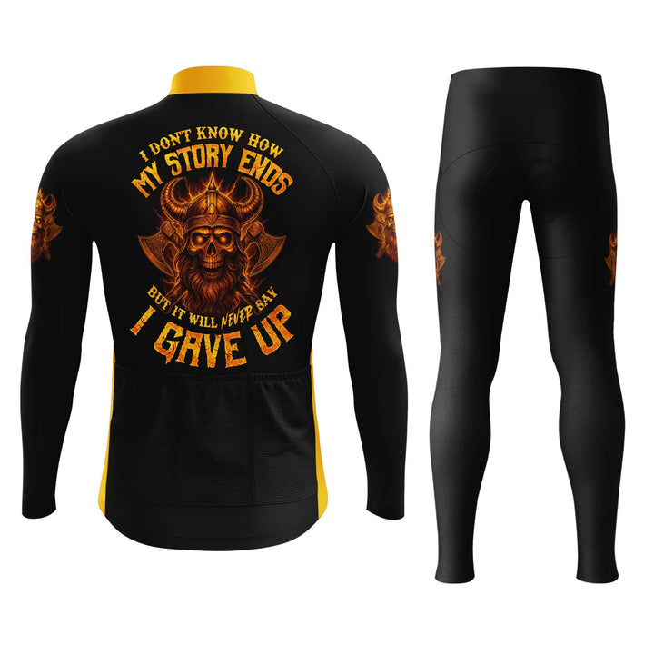 Skull Never Give Up Men's Cycling Jersey Set, Road Bike Cycling Kit for Men, Biking Outfit, Bicycle Suit, Team Racing Uniform