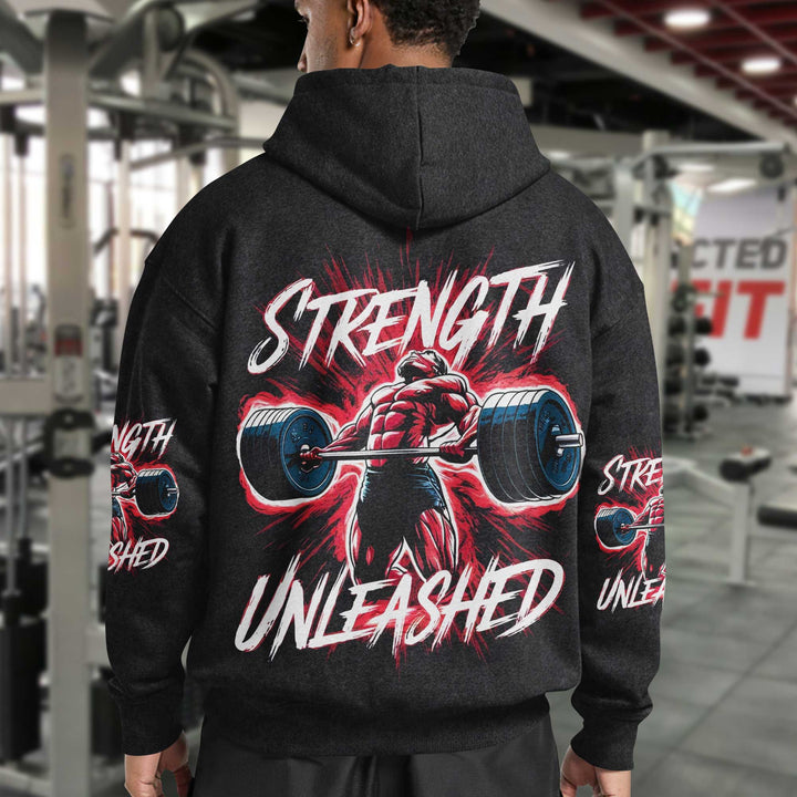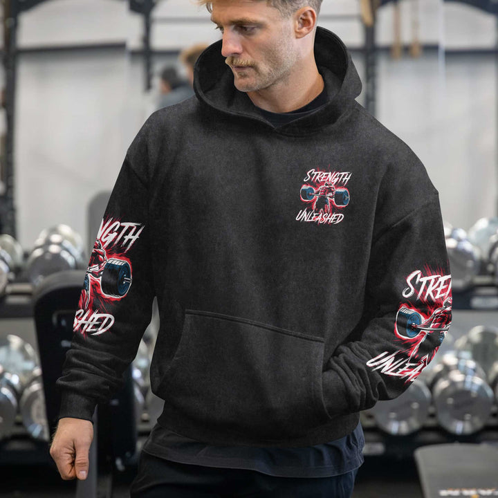 Strength Unleashed Men's Gym Hoodie, Workout Shirt, Oversized Pullover Hoodie