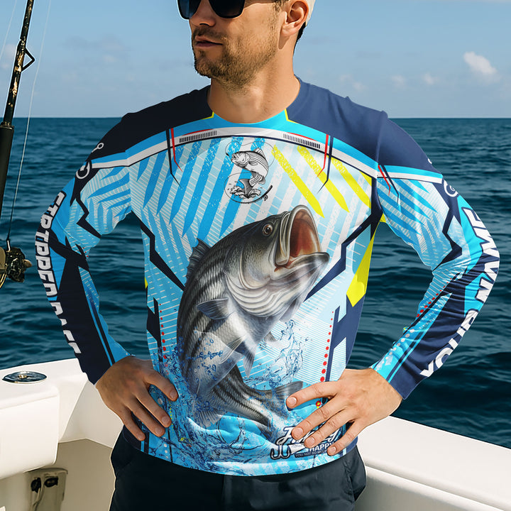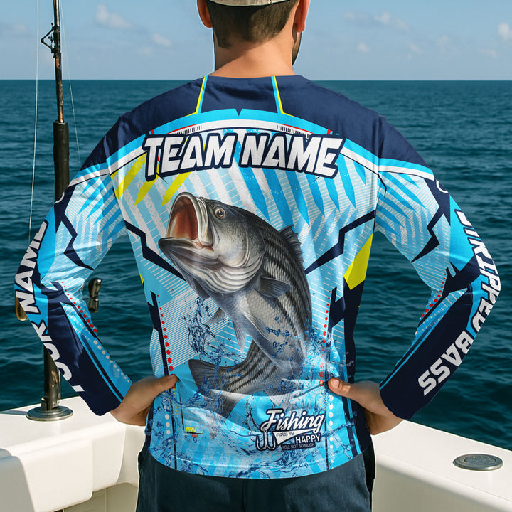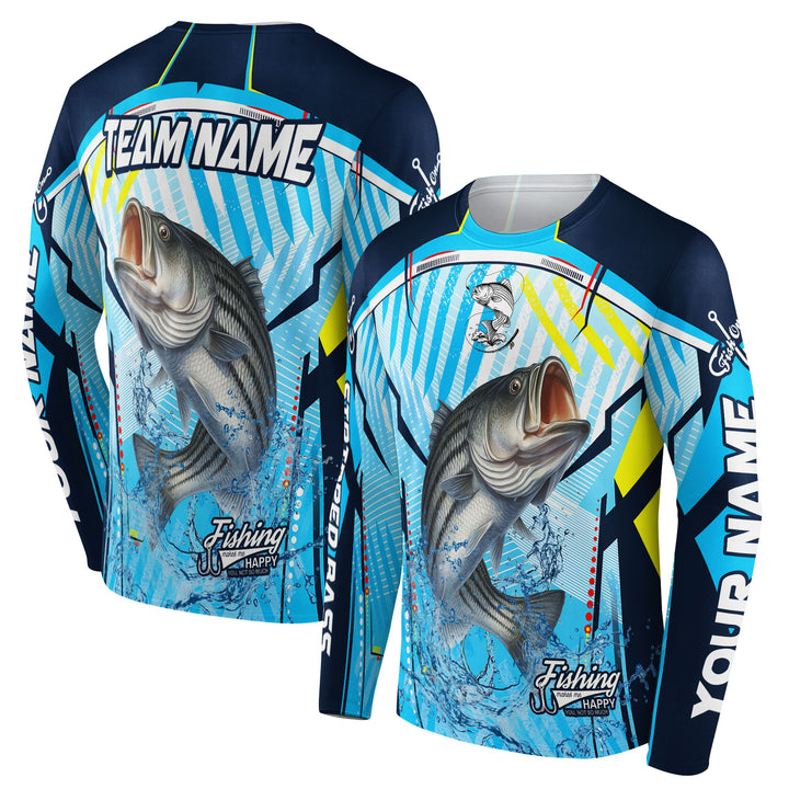 Striped Bass Fishing Makes Me Happy Personalized Men Women Long Sleeve Shirt Custom Fishing Apparel