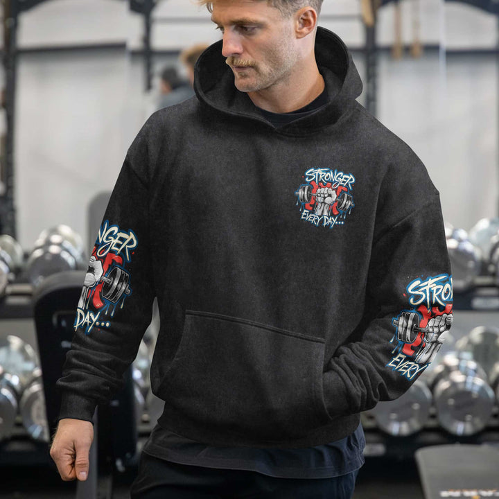 Stronger Every Day Men's Gym Hoodie, Workout Shirt, Oversized Pullover Hoodie