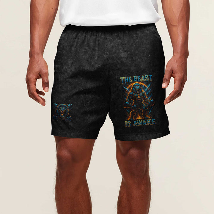The Beast Is Awake Men's Gym Shorts, Workout Shorts, Performance Active Shorts
