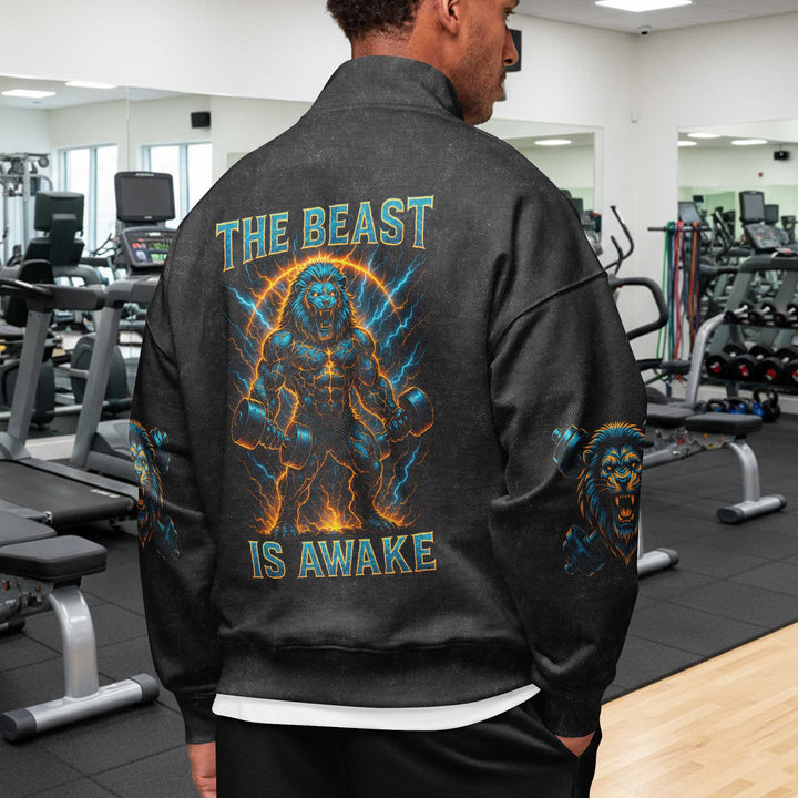 The Beast Is Awake Men's Gym Sweatshirt, Workout Shirt, Oversized Crewneck Sweatshirt