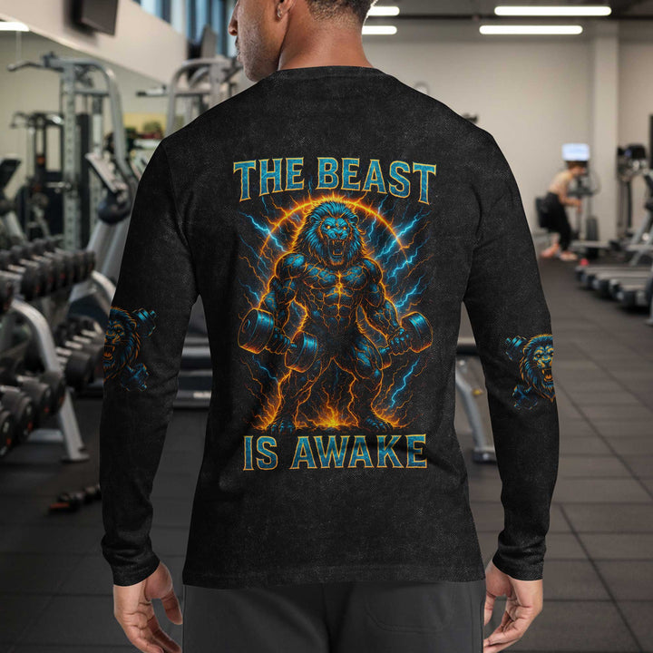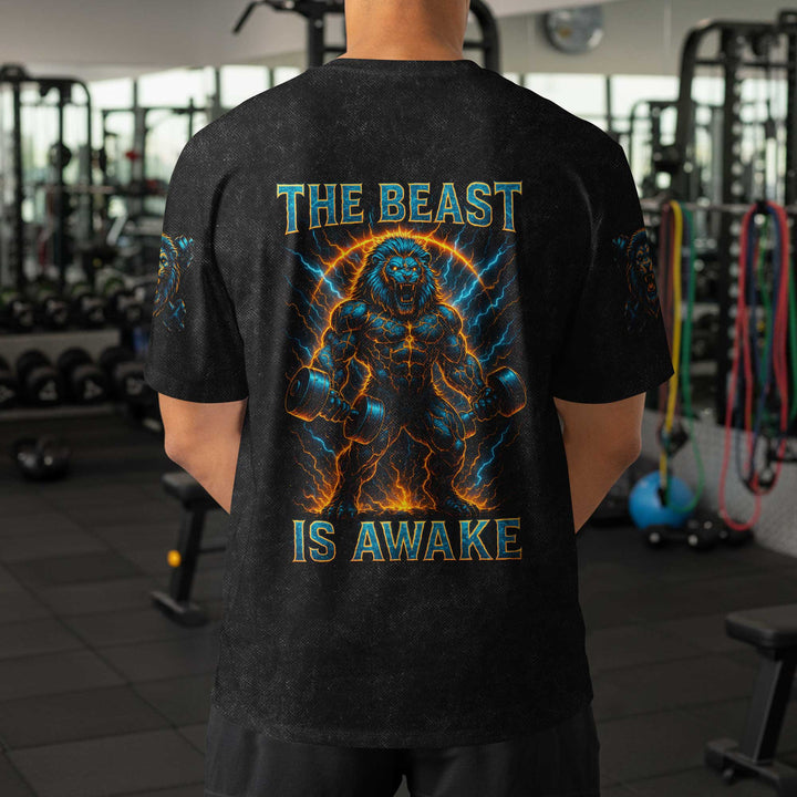 The Beast Is Awake Men's Gym T-Shirt, Workout Shirt, Oversized Pump Cover Tee