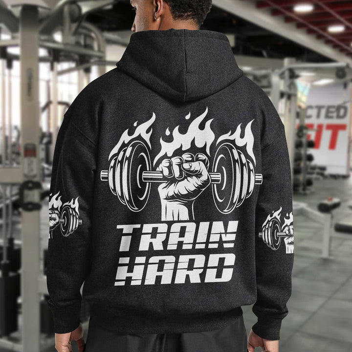 Train Hard Men's Gym Hoodie, Workout Shirt, Oversized Pullover Hoodie
